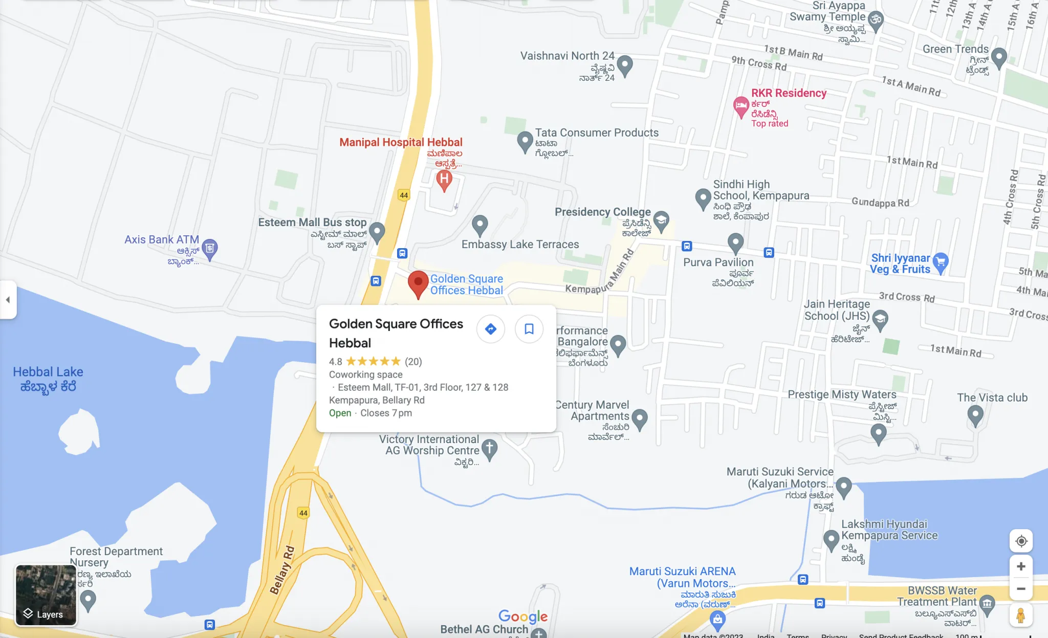 Golden Square, Esteem Mall, TF-01, 127 & 128, Kempapura Hebbal, Bangalore, Karnataka – 560024, INDIA